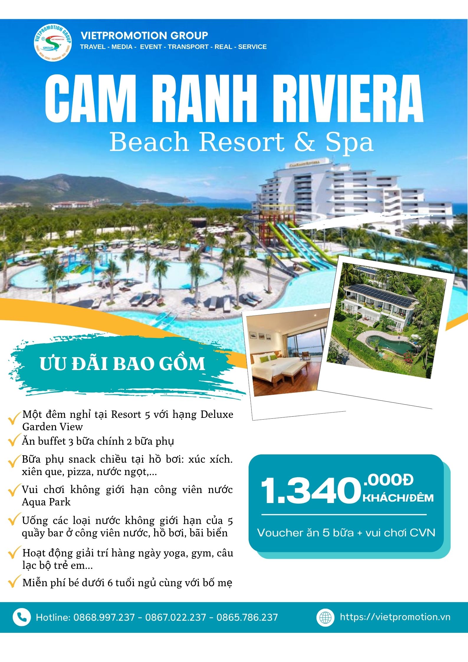 CAM RANH RIVIERA BEACH RESORT & SPA 5⭐ – VOUCHER ĂN + VUI CHƠI CÔNG VIÊN NƯỚC